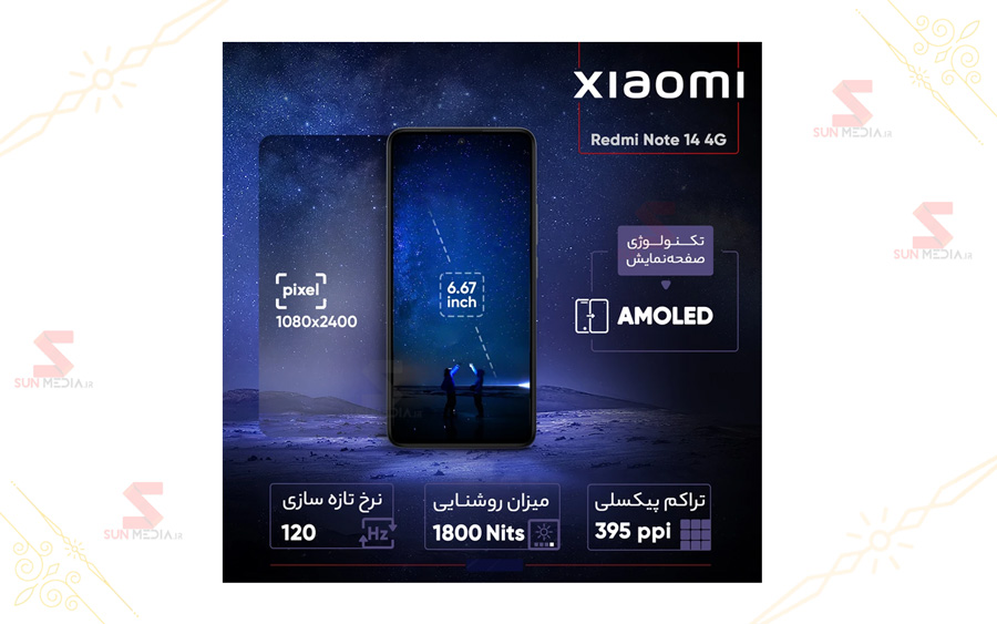 مشخصات گوشی شیائومی مدل Redmi Note 14 4G دو سیم کارت ظرفیت 256 گیگابایت و رم 8 گیگابایت